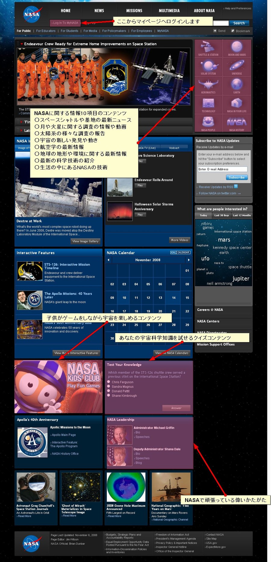 「NASAはこんなことをやっています」という情報提供の場なのかと思っていましたが、訪れるユーザーが楽しめるWebサイトになっていて、とても驚きました。