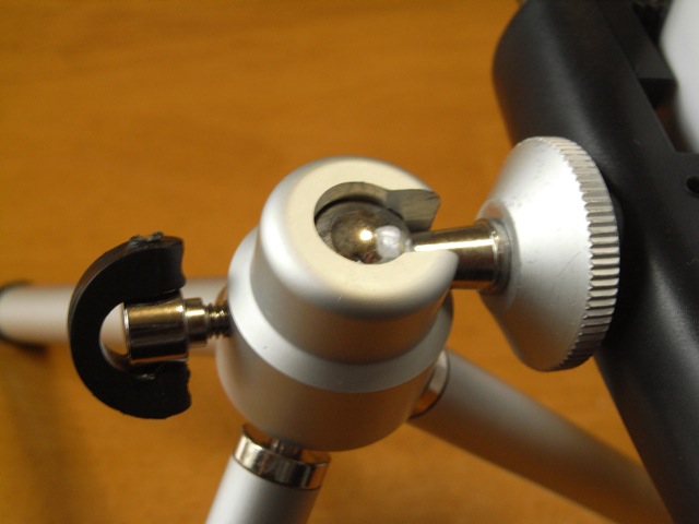 これがこのミニ三脚の特徴で、ヘッド部分が90度可倒するので、三脚に対して ━ こうなっているiPhoneを┃こうできるわけです。