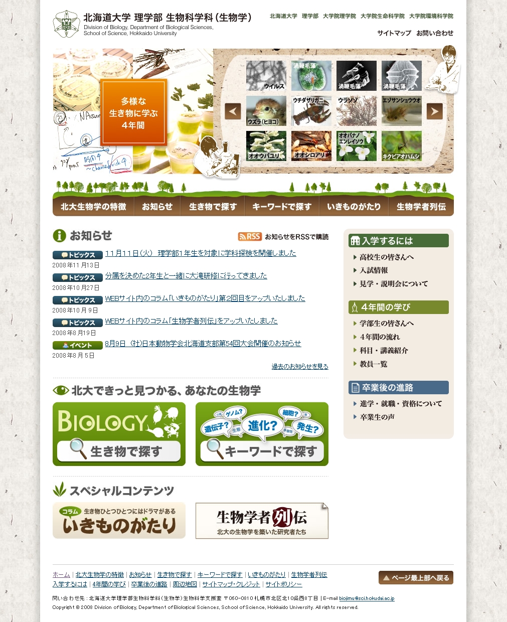 そこで真摯に受験生獲得・サイトの利便性向上をお考えの方に、北海道大学内でおこなわれた大学院文学研究科・文学部、理学部生物科学科(生物学)の例を取り上げサイトリニューアル説明会をご案内いたします。