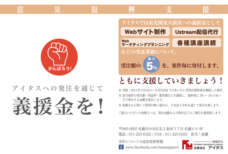 - 義援金プロジェクトのハガキデザインデータを無料提供