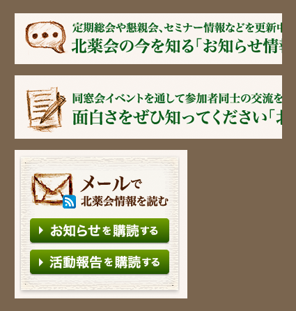 - 「お知らせ」や「活動報告」の情報をメール購読できるためのシステム設定