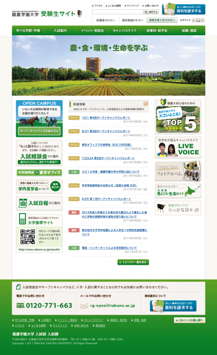 酪農学園大学 受験生サイト様 全国の学生へ向けた大学イメージの訴求と求める情報が取り出しやすい受験生サイト