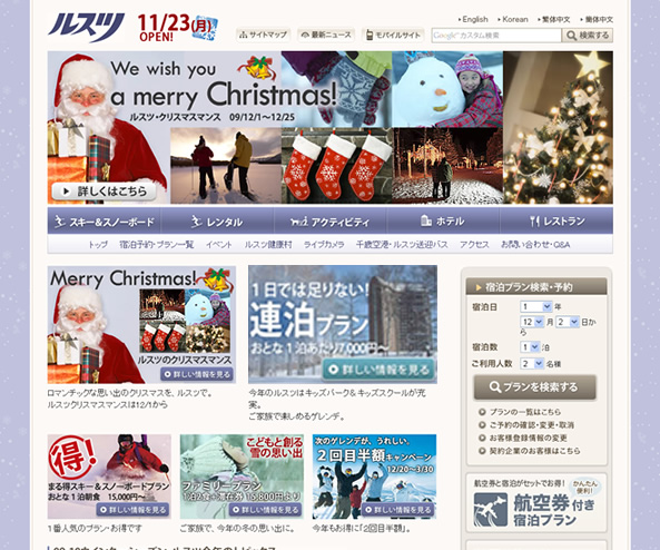 春夏秋冬それぞれで楽しめるアミューズメントやアクティビティなどのプラン紹介をメインに、サイト構成、デザインを刷新して訴求力の向上を図ったサイトリニューアルの事例です。